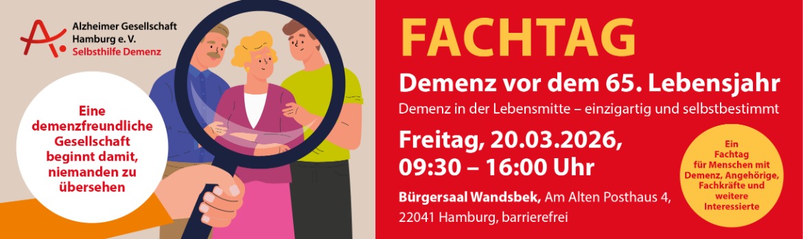 Die Alzheimer Gesellschaft Hamburg e.V. wurde als Selbsthilfe-Organisation für Menschen mit einer Demenz und Angehörige vor über 30 Jahren von Angehörigen und Fachkräften gegründet. Schwerpunkte unserer Arbeit liegen in der Beratung, Begleitung und Unterstützung von Erkrankten und Angehörigen.